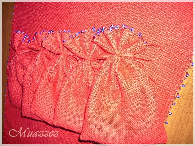 Çuval Kumaş İle Nazar Boncuğudan Runner ve Hediyelik Keseler...